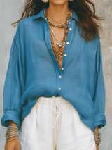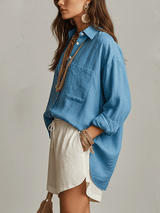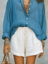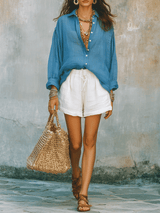 Embrace the bohemian spirit with this Soft Blue Lightweight Shirt and Shorts set. Its cozy fit and effortless style make it a versatile addition to any wardrobe, ensuring you remain fashionable while at ease.