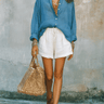 Bohemian Style Soft Blue Lightweight Shirt And Shorts