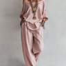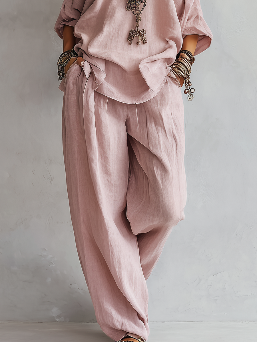 Casual Light Pink Linen Wide-leg Pants Set