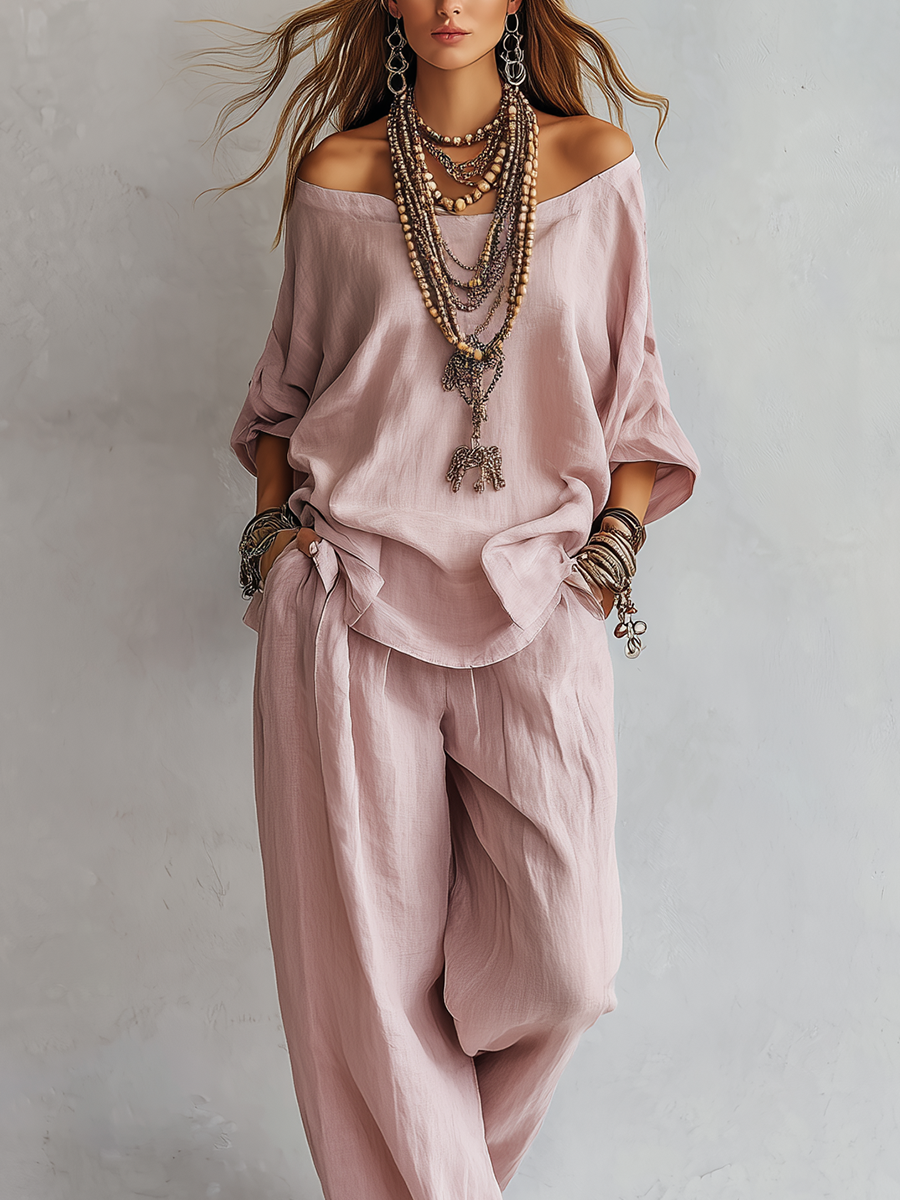 Whether you're heading to a brunch, a beachside stroll, or a garden party, the Casual Light Pink Linen Wide-leg Pants Set is your go-to ensemble for versatile and stylish wear. With its high-quality fabric and elegant design, stepping out in style and comfort has never been easier.