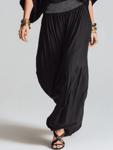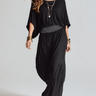 Elegant Black Draped Top & Wide-Leg Pants Set