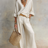 For a complete resort-ready ensemble, pair this set with a wide-brimmed sunhat and a pair of stylish sandals. Add some simple gold or silver jewelry to enhance the chic, effortless vibe. You can also carry a woven straw bag for a touch of texture and practicality.