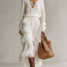 Relaxed Cream V-Neck Ribbed Knit Top & Tiered Chiffon Skirt Co-ord Set
