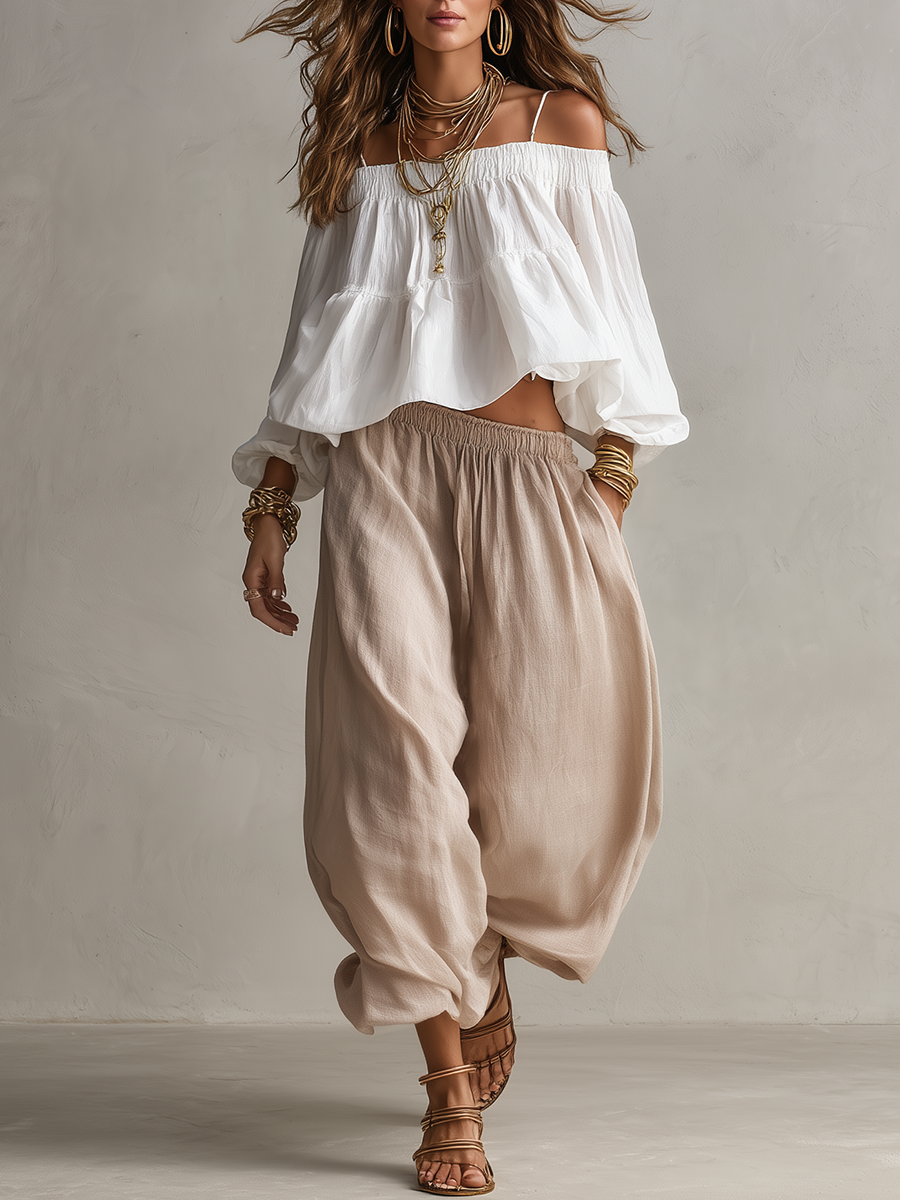 Embrace effortless style with the Relaxed Off-Shoulder Pants Set, a versatile and comfortable addition to your wardrobe that seamlessly combines modern elegance with everyday practicality.