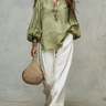 Sage Linen Blouse & Relaxed White Trousers Everyday Escape Set