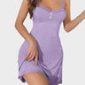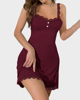 Slip into effortless allure and dreamy softness with this lace-trimmed spaghetti strap nightdress. Featuring an open back, adjustable tie design, and ultra-stretchy breathable fabric, it's the perfect blend of comfort and seduction—ideal for summer nights, lounging, or vacation vibes. Whether you’re relaxing at home or setting the mood, this sleep dress is your go-to for chill elegance and flirty charm.