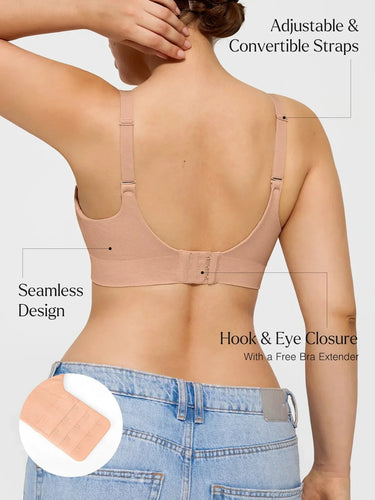 • Convertible Straps & U-Back Design: Adjustable straps easily convert between classic, halter, or crisscross styles to match any outfit. The U-shaped back not only provides extra support but also smooths and minimizes the appearance of back bulges for a clean, sleek silhouette under clothing.