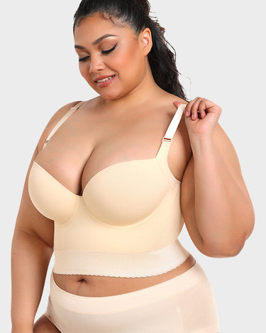 Crafted with the modern woman's desire for a flawless, head-turning figure in mind, this innovative bra features a longline design, built-in shapewear, push-up cups, and targeted back smoothing, empowering you to feel your absolute best from morning until night.