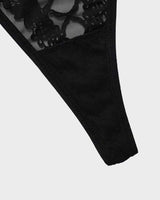 Delicate Lace Trim: Intricate lace panels along the waistband and leg openings offer a visually striking contrast, infusing the panty with a captivating, feminine appeal.