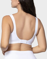 Three-row back closure for customized fit, removable pads for versatile shaping, and durable fabric that washes easily and holds its shape.