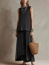 This Black Minimalist Sleeveless Top and Flowing Trousers Set is a must-have for those who appreciate understated elegance and comfort. Whether attending a formal event or enjoying a casual gathering, this set provides the perfect balance of style and functionality.
