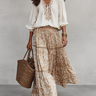 This two-piece bohemian set pairs a breezy embroidered blouse with a flowing maxi skirt for an effortless, sun-ready look. Crafted from a lightweight woven fabric, the ensemble features intricate tonal embroidery that lends artisanal charm without feeling heavy. The blouse offers a relaxed silhouette that balances feminine detail with everyday wearability, while the maxi skirt creates graceful movement with a flattering A-line cut.