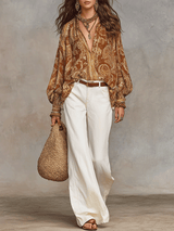 The Bohemian Paisley Blouse features a captivating and vibrant paisley print, embodying a sense of artistic freedom and effortless style. Made with lightweight and breathable fabric, this blouse ensures both comfort and elegance for all-day wear.