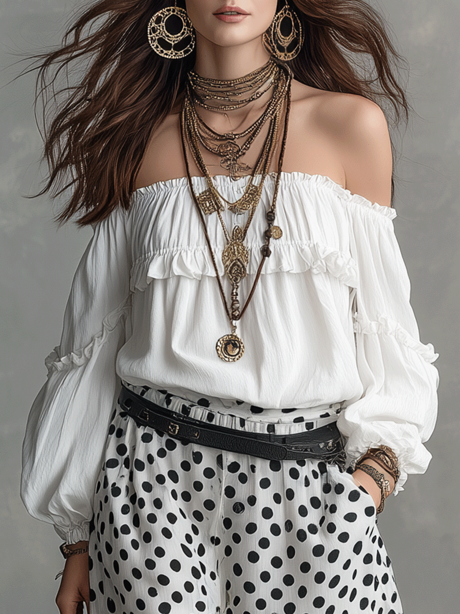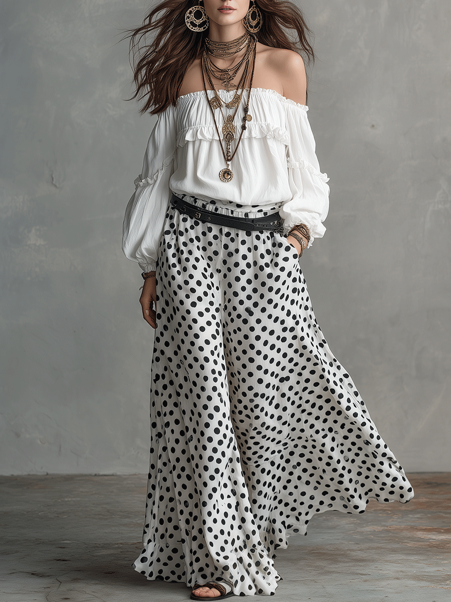 This Bohemian Polka Dot Skirt Set is a must-have for those who love to play with patterns while keeping their style effortless. It's perfect for day-to-night transitions, making it a versatile addition to your wardrobe.