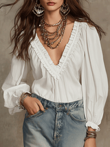 This Effortless Bohemian V-Neck Cotton Blouse is a versatile, breathable wardrobe staple that marries relaxed comfort with tasteful handcrafted details. Its airy fit and neutral styling make it easy to dress up or down — a go-to piece for warm-weather days and layered looks alike.
