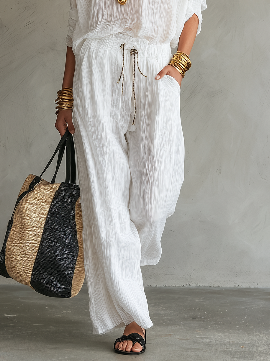 Summary: The Effortless Crinkled Wide-Leg Pants Set is the epitome of style and comfort. Its unique design and versatility make it a must-have addition to your wardrobe, suitable for a variety of occasions. Elevate your fashion game with this statement-making ensemble.