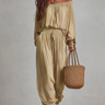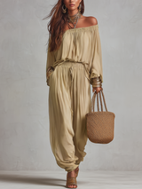 Effortless Dune Beige Off-the-Shoulder Draped Harem Trouser Co-ord Set