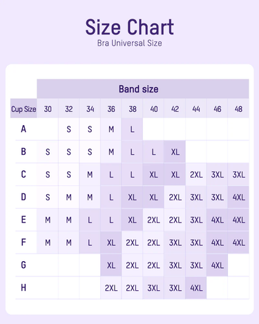 If you’re unsure about your size, choose your usual bra band and match it to the table above — or size up for extra comfort.
