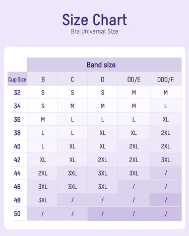 If you’re unsure about your size, choose your usual bra band and match it to the table above — or size up for extra comfort.